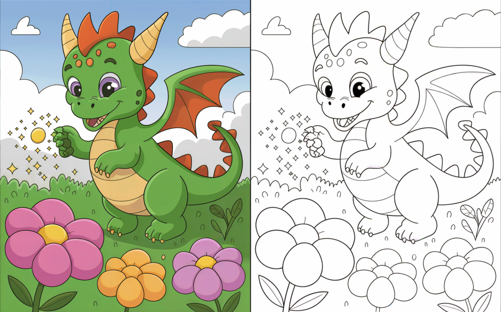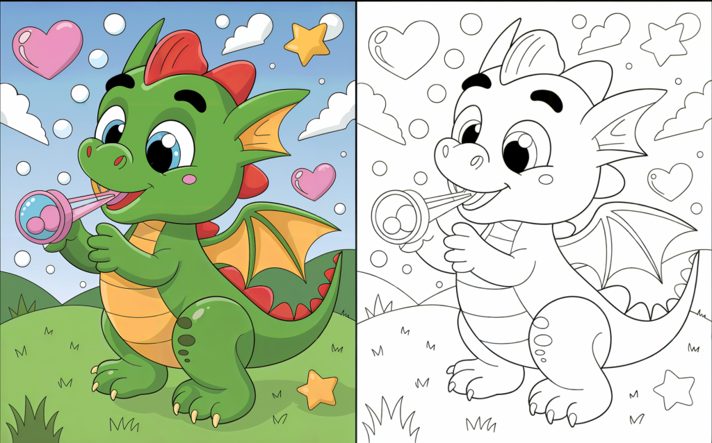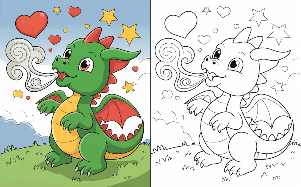 These cute dragon coloring pages improve fine artistic skills, hand-eye coordination, and focus in kids while engaging in an enjoyable, no-internet leisure activity. Coloring also promotes creativity patience, and inventiveness as children select colors and finish each image at their own pace. The included colored version of each page is particularly beneficial for younger youngsters since it offers a distinct color reference and boosts confidence. Parents can use the colored pages as a simple guide or even as a gift after coloring is completed. This helps kids feel proud of their work while learning color recognizing and visual understanding, therefore making the activity both educational and encouraging.