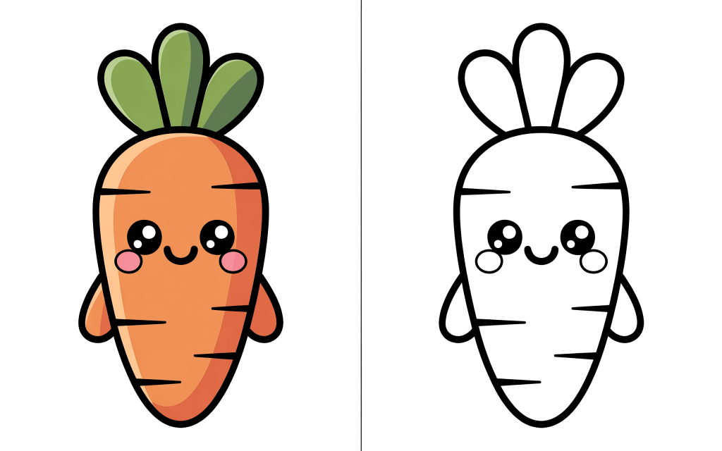 🥕 1. Cute Carrot Coloring Page