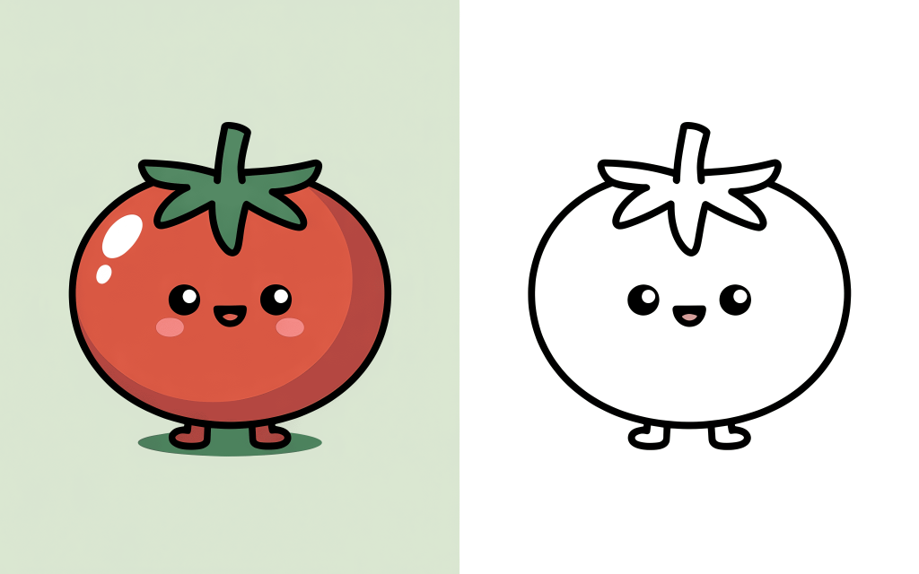 🥕 6. Kawaii Tomato Buddy Coloring Page