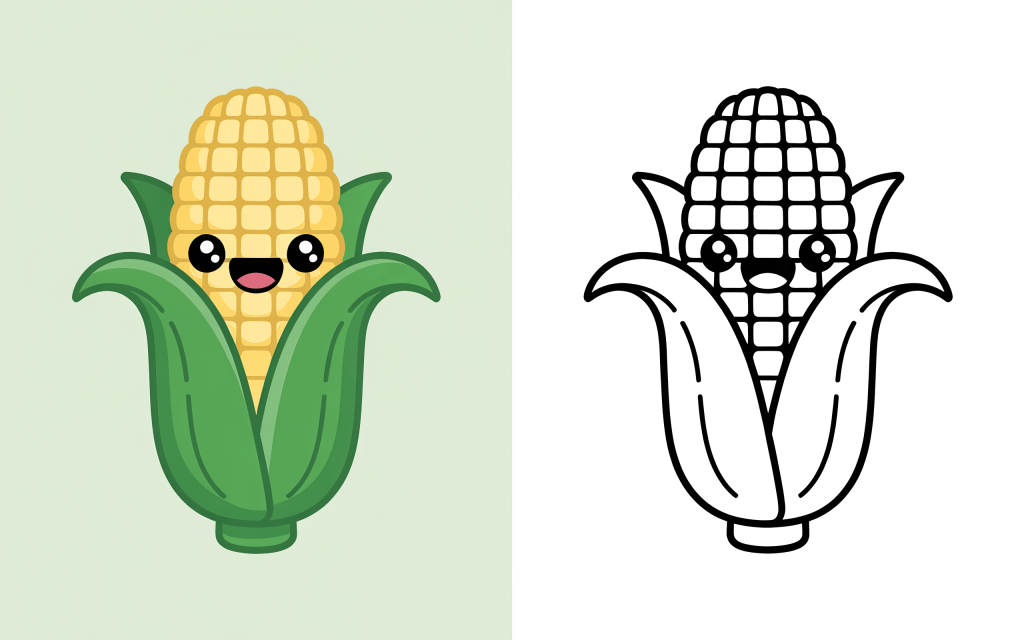 🥕 5. Sweet Corn Coloring Sheet