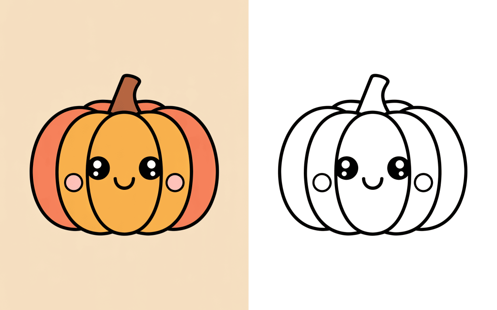 🥕 4. Kawaii pumpkin coloring page