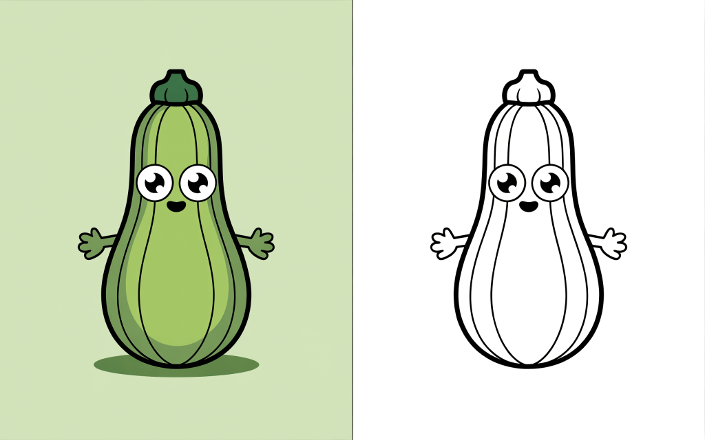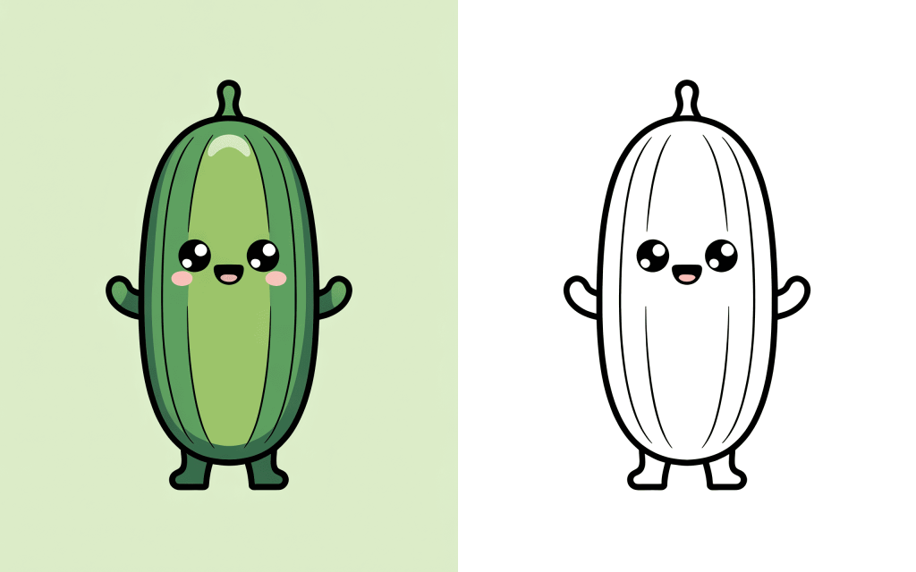 🥕 8. Kawaii Zucchini Coloring Page