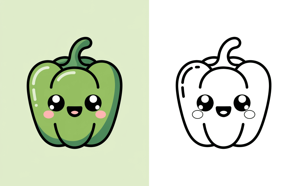🥕 18. Kawaii Bellpepper Coloring Page