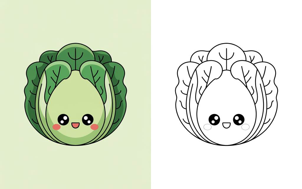 🥕 17. Kawaii Cabbage Coloring Page