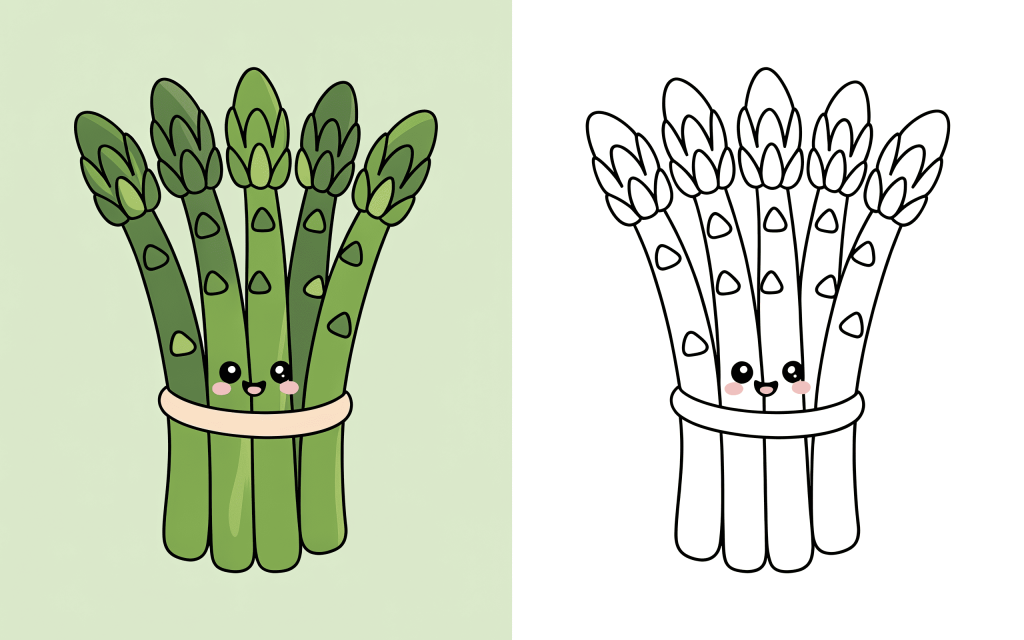 🥕 12. Cute Asparagus Bunch Coloring Page