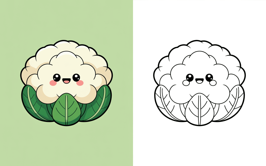 🥕 11. Kawaii Cauliflower Coloring Page