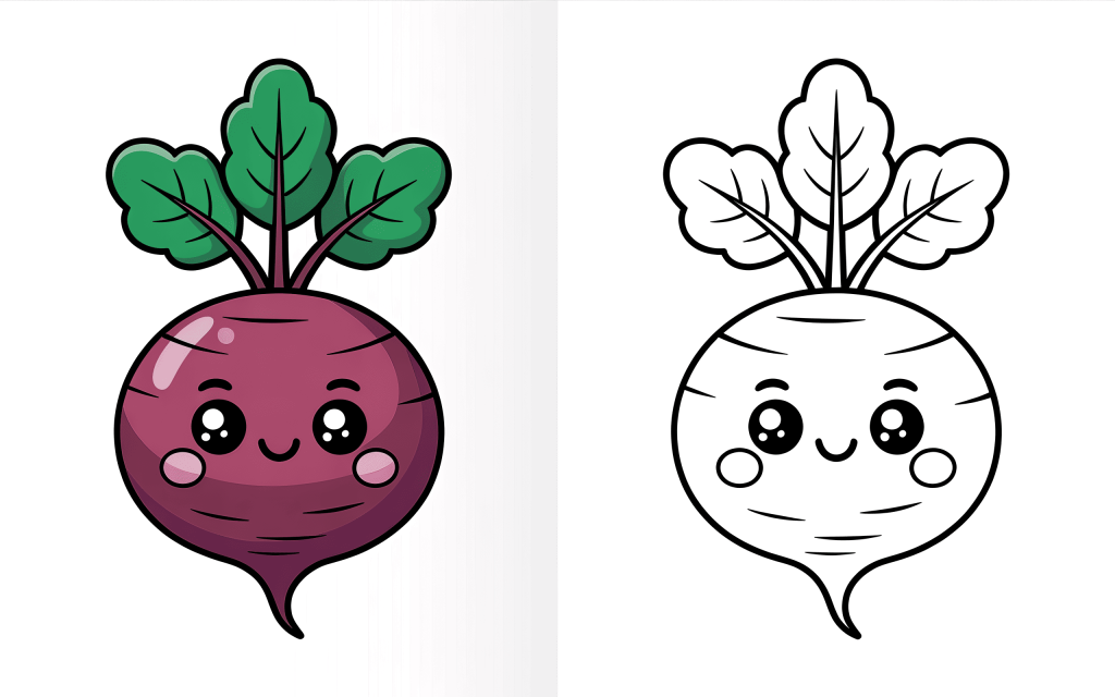 On top, this round turnip with leafy greens seems extremely pleasant and sweet. Its huge form lends itself to simple coloring and is perfect for laid-back coloring projects.