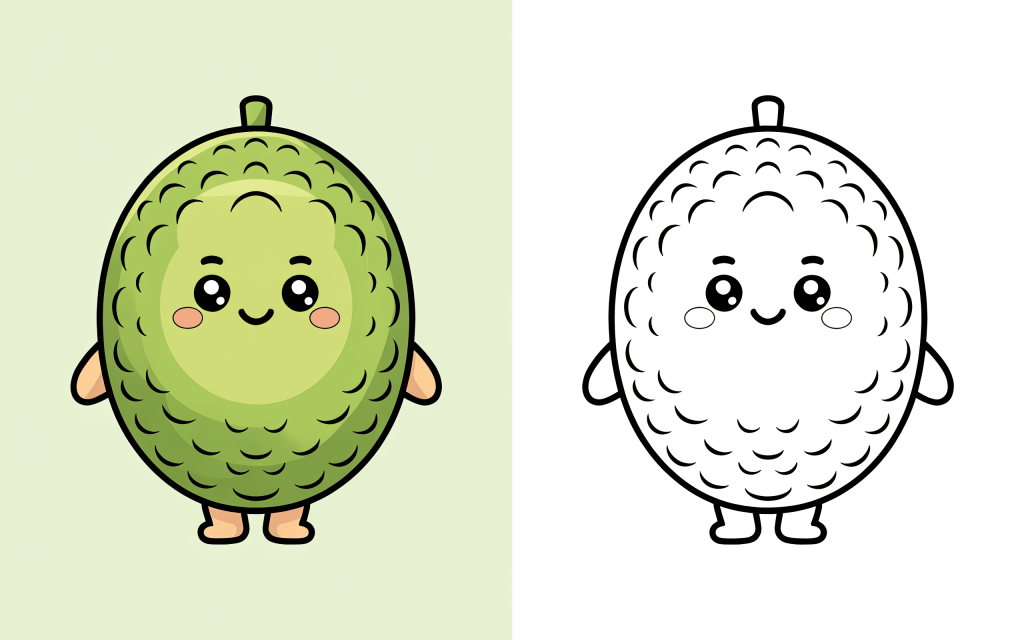 🥕 20. Jackfruit Kawaii Coloring Page