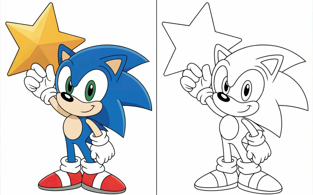 Sonic proudly holds a large star, adding a playful and cheerful element to the page. The simple star shape gives kids plenty of room to experiment with colors.