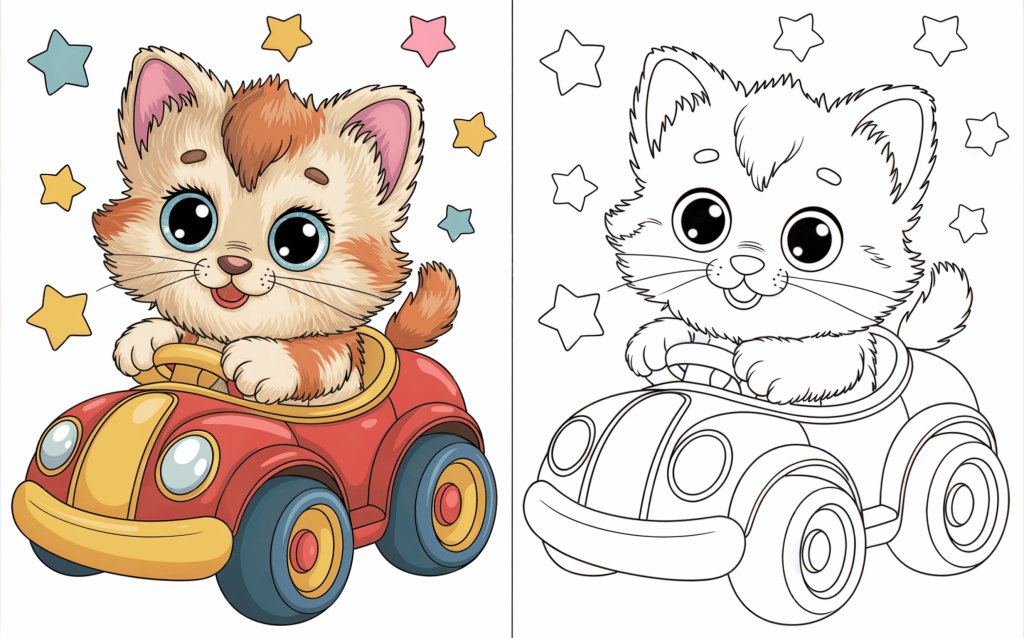 🐾 19. Happy Kitten Driving a Toy Car