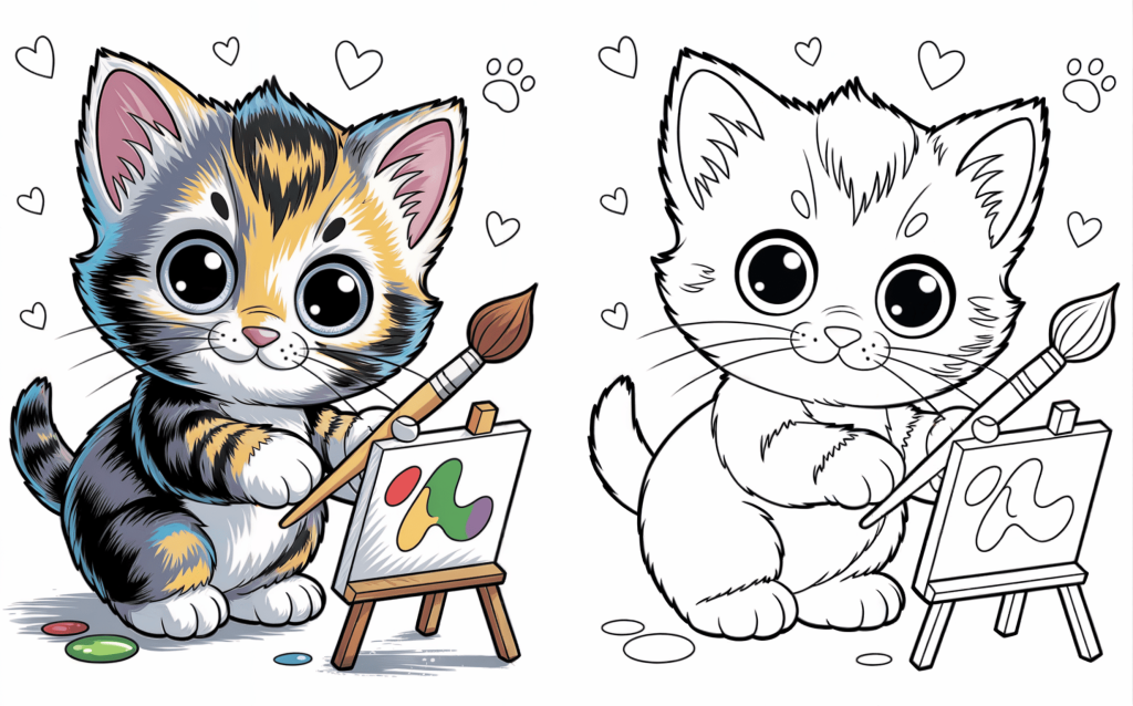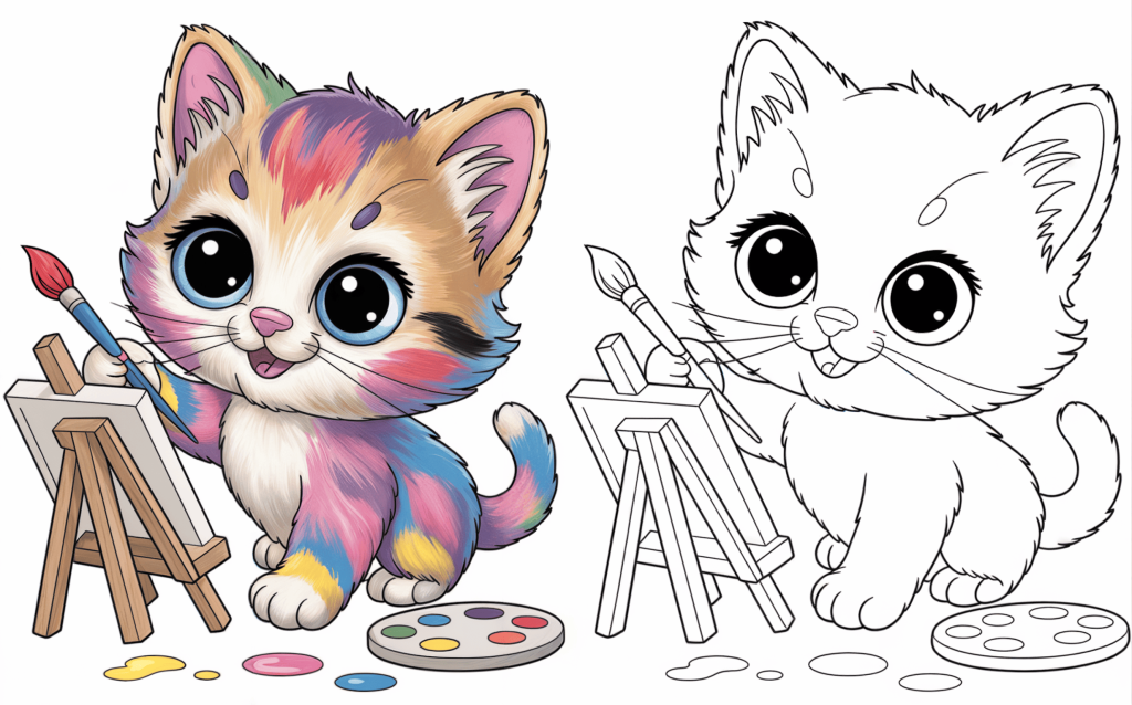 🐾 11. Creative Kitten Painting on an Easel