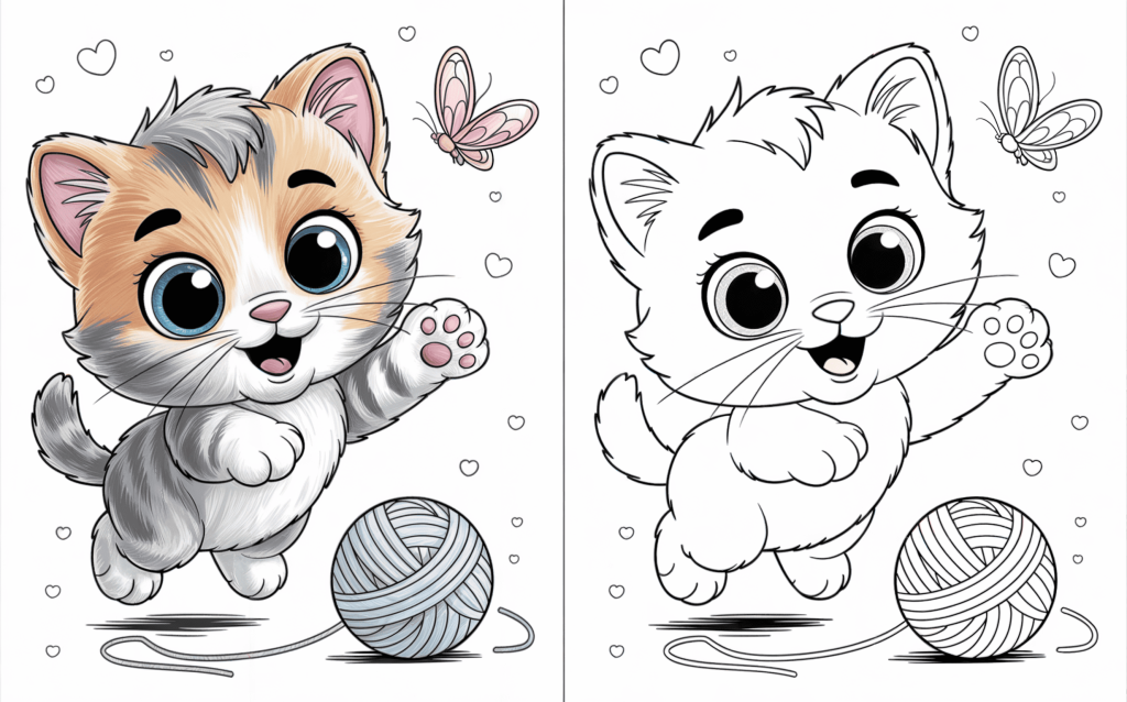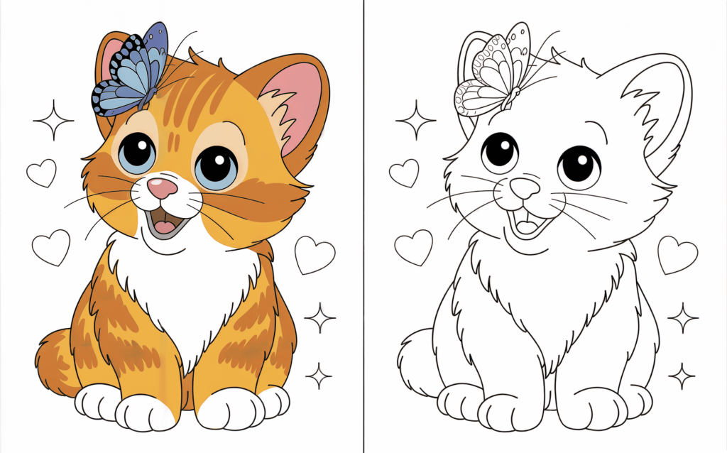 These cute kittens coloring pages improve fine artistic skills, hand-eye coordination, and focus in kids while engaging in an enjoyable, no-internet leisure activity. Coloring also promotes creativity patience, and inventiveness as children select colors and finish each image at their own pace. The included colored version of each page is particularly beneficial for younger youngsters since it offers a distinct color reference and boosts confidence. Parents can use the colored pages as a simple guide or even as a gift after coloring is completed. This helps kids feel proud of their work while learning color recognizing and visual understanding, therefore making the activity both educational and encouraging.