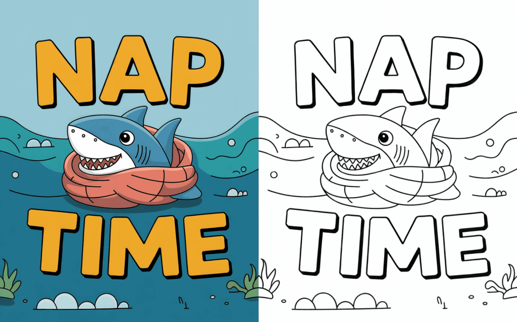 🦈 13. “Nap Time” Shark Coloring Page