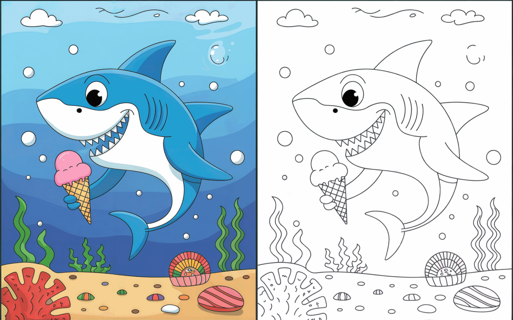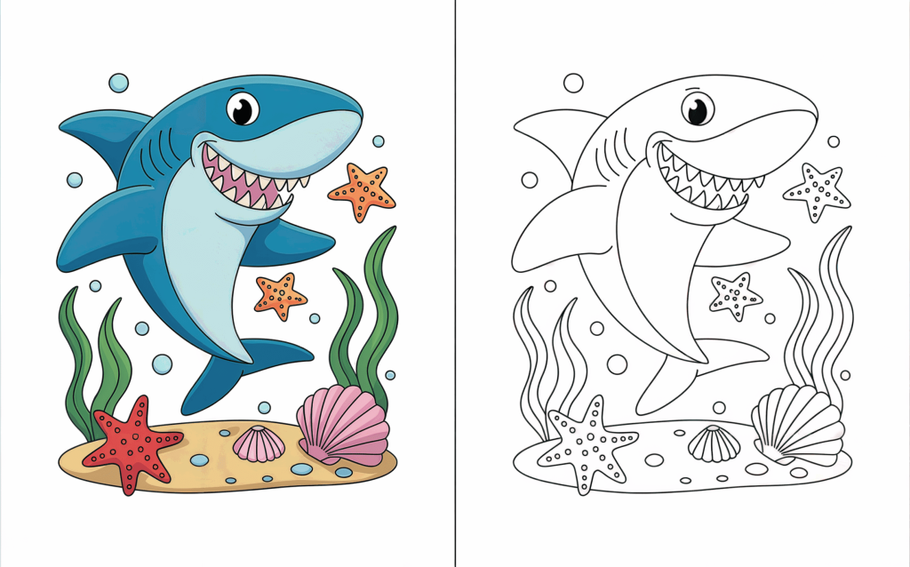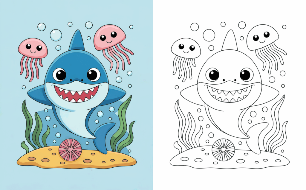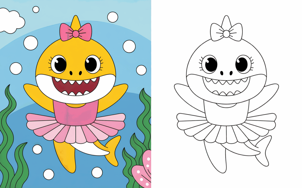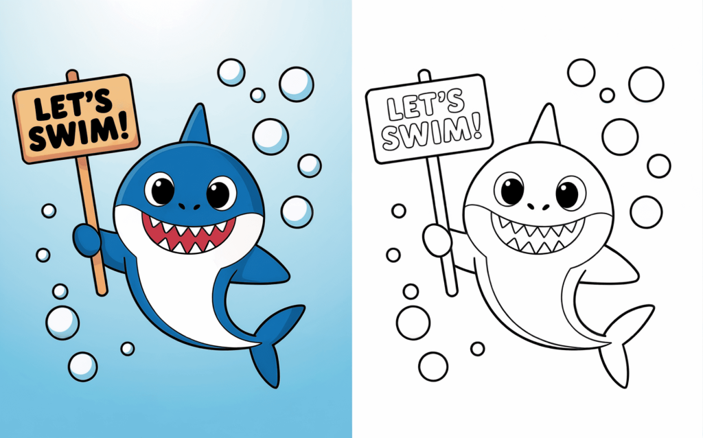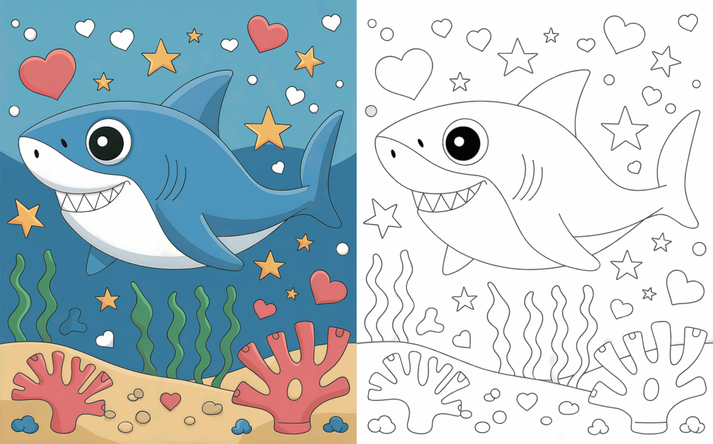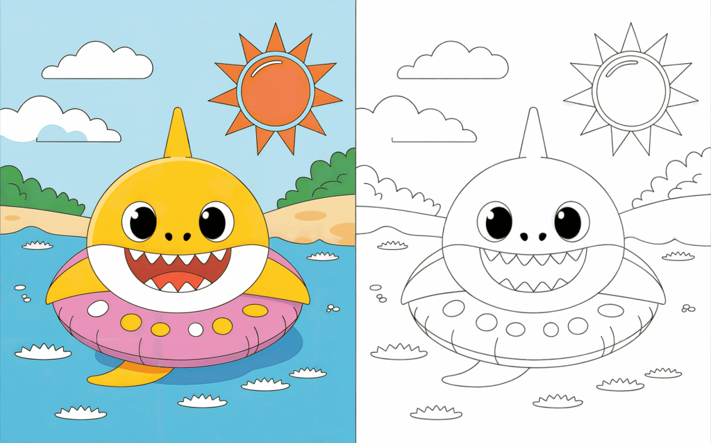 Sharks need not be intimidating—particularly when they are cute, cheerful, and prepared to be colored! Intended to change these ocean critters into affable buddies children would absolutely adore, our Cute Shark Coloring Pages collection aims to help them. Each page is designed with gentle, rounded shapes and striking outlines suitable for small hands, ranging from playful baby sharks and melodic sharks to funny beach-loving sharks.