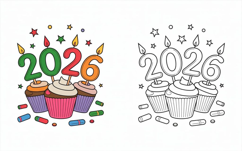 This page is quite amusing with sweet cupcakes covered with 2026 candles. Kids could delight in selecting vibrant frosting and decor.