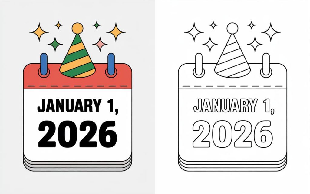 Highlighting January 1, 2026, this straightforward calendar-styled coloring page is a brilliant way to present dates and the idea of fresh starts.