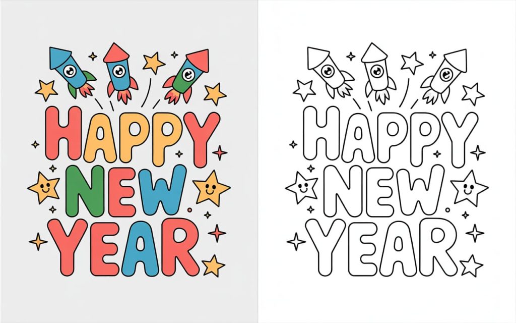 By inspiring creativity and self-expression, coloring lets kids freely investigate hues, shapes, and concepts. It also encourages attention and patience, hence making it a soothing activity that aids kids in unwinding—especially on thrilling holidays like New Year. Above all, as kids finish every page and proudly display their final work, coloring fosters confidence.