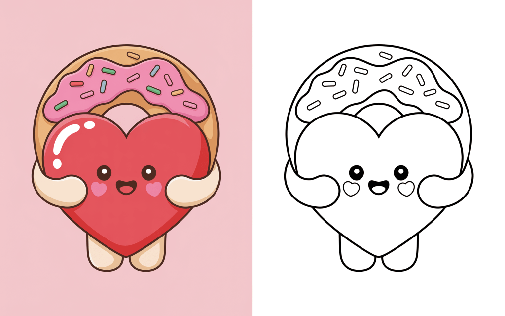 These Valentine Food coloring pages improve fine artistic skills, hand-eye coordination, and focus in kids while engaging in an enjoyable, no-internet leisure activity. Coloring also promotes creativity patience, and inventiveness as children select colors and finish each image at their own pace. The included colored version of each page is particularly beneficial for younger youngsters since it offers a distinct color reference and boosts confidence. Parents can use the colored pages as a simple guide or even as a gift after coloring is completed. This helps kids feel proud of their work while learning color recognizing and visual understanding, therefore making the activity both educational and encouraging.