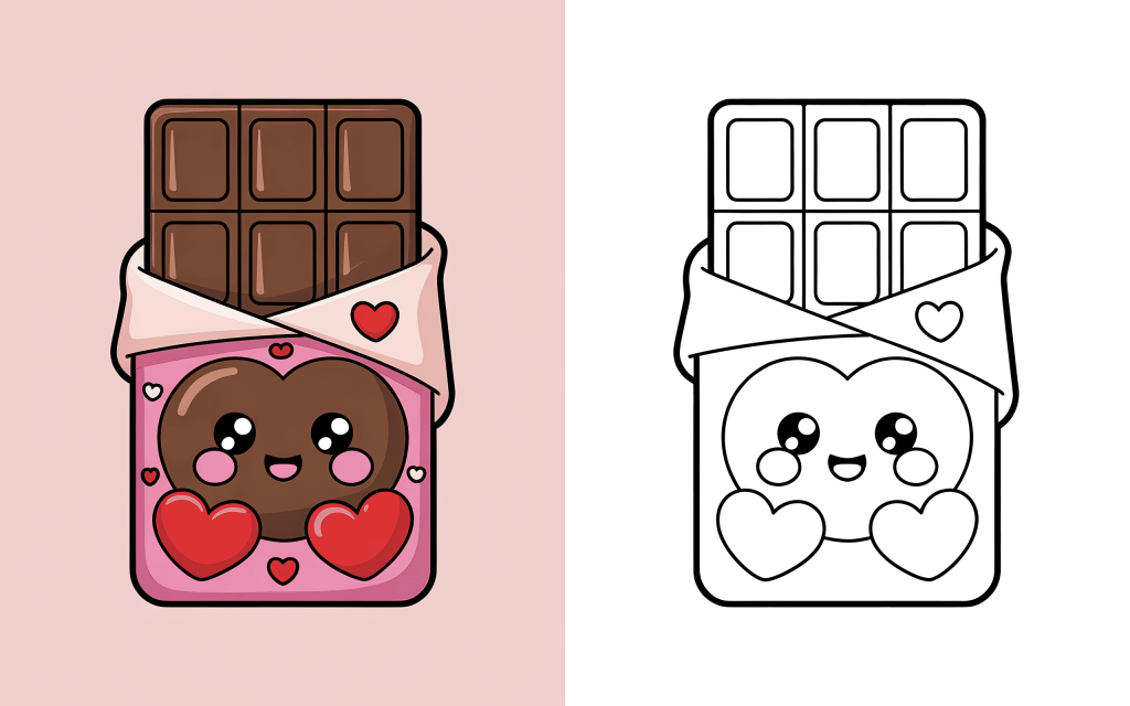 Every image has vivid outlines, cute expressions, and heart-inspired details, making them simple to color for kids of all ages. Adults who like beautiful, stress-free coloring experiences will find them to be ideal as well. It’s time to color the sweetest Valentine sweets; get your crayons, markers, or colored pencils.